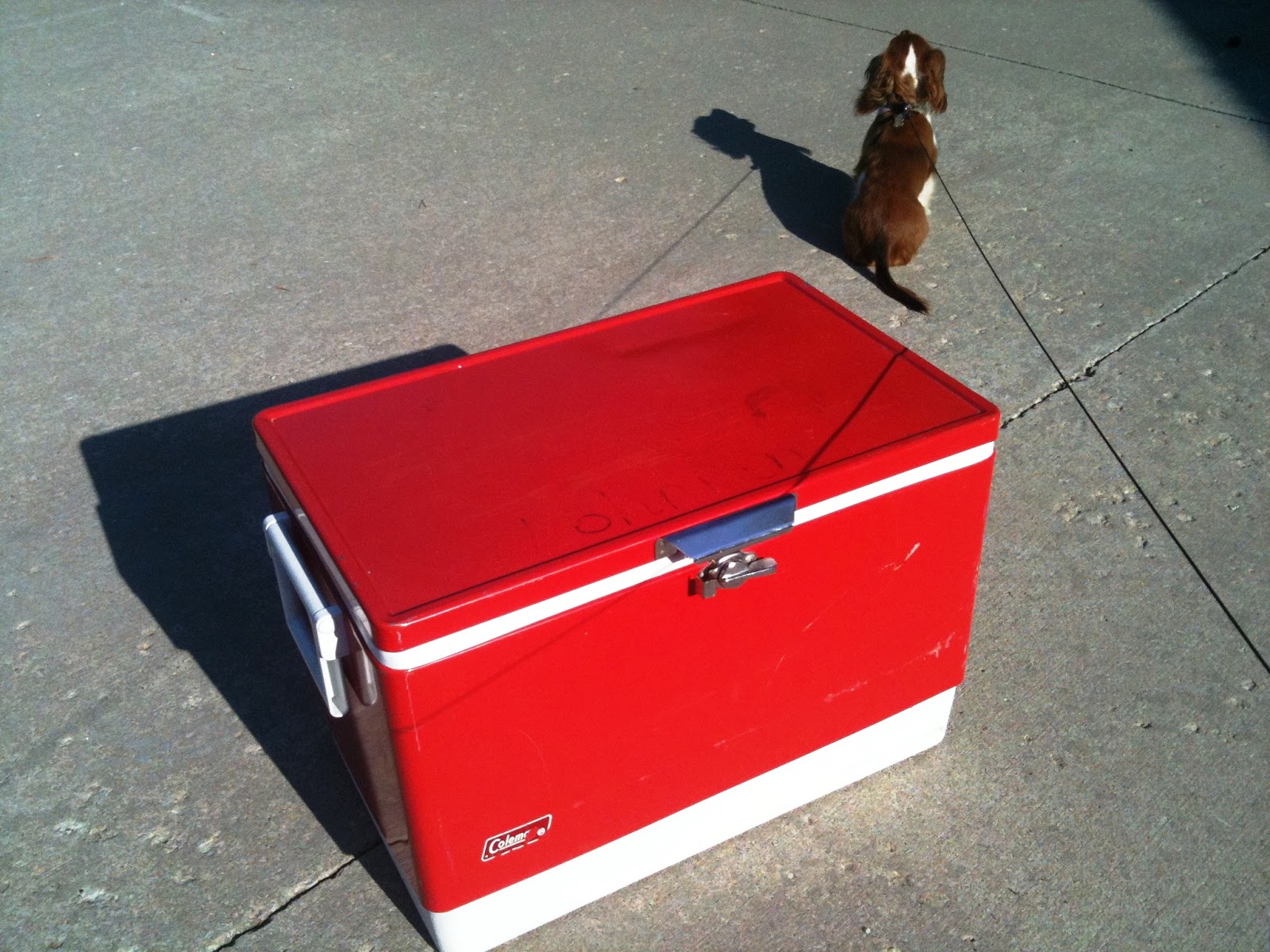 Went to an amazing quilt exhibit/show yesterday and will post details later. In the meantime, spending some girl time with a friend and some dogs! She has this amazing c.1980 Coleman cooler; my family had one just like it when I was growing up. I want to steal it when she isn't looking...