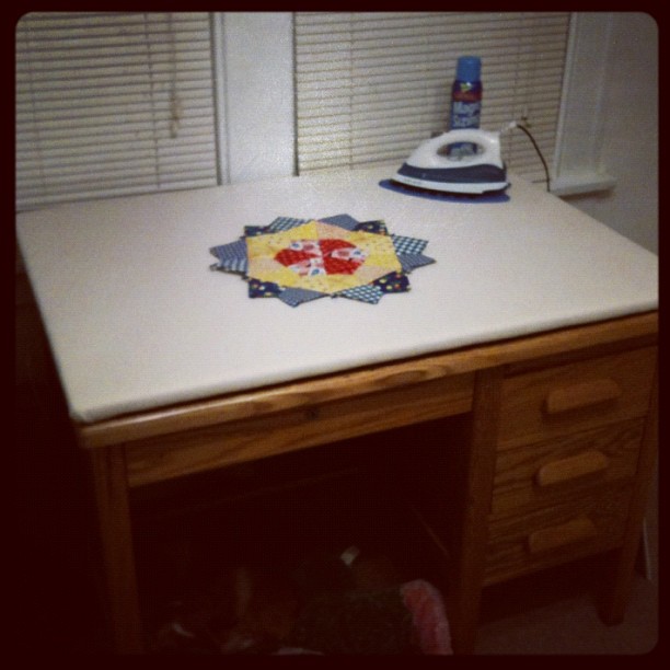 The pressing board is something I've wanted to make for forever and has been super useful while working on some far flung bee blocks for Holly. She asked for mod mosaic blocks using our scraps, with a color gradient and odd/unsquare shape. I have to finish the red-purple-blue one tonight so I can mail them off ASAP, as these were July's blocks and I'm a major tool for being so behind.