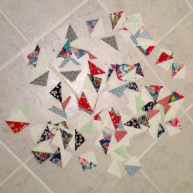 I meant to post about my Give Me Liberty sew-along progress on Monday, but life got in the way. Stupid life. I have 81 2.5" half square triangle units hanging out and waiting to become a pillow. I've been playing around with options but am not sure where I'm really headed yet.